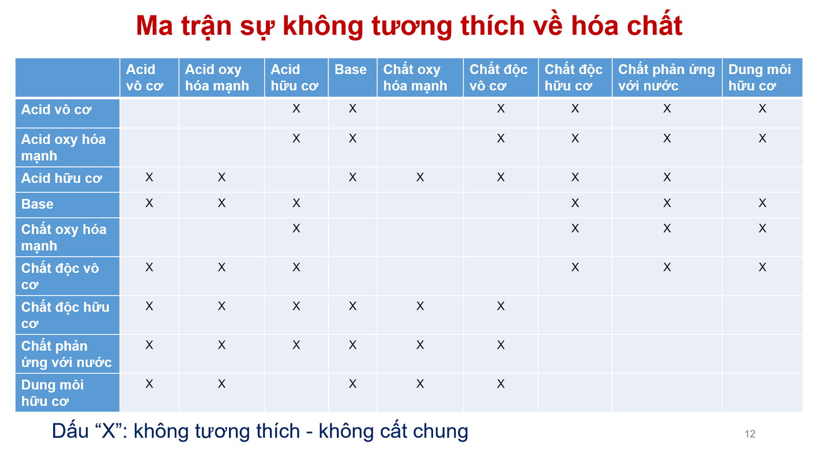 Hình 6. Ma trận sự không tương thích của hóa chất