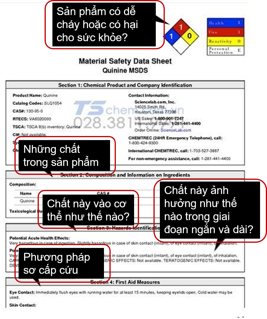 Hình 4. Các thông tin trên Bảng chỉ dẫn an toàn hóa chất MSDS